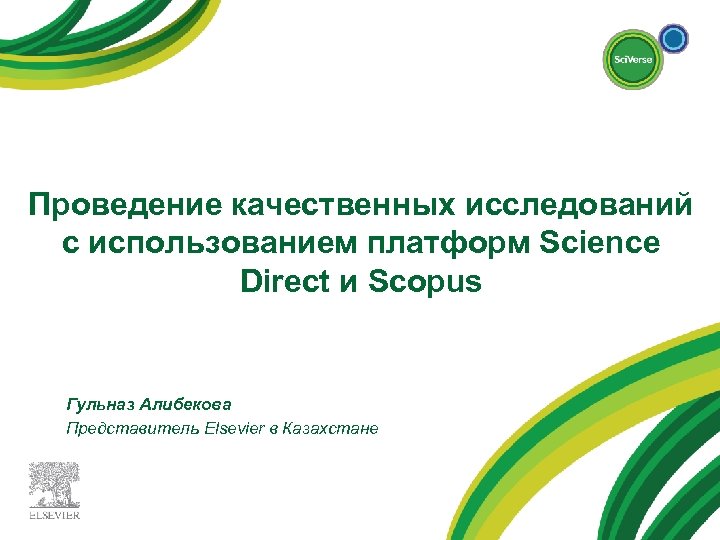 Проведение качественных исследований с использованием платформ Science Direct и Scopus Гульназ Алибекова Представитель Elsevier в Казахстане