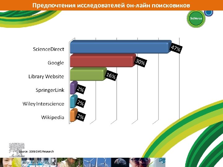 Предпочтения исследователей он-лайн поисковиков Source: 2009 SMS Research