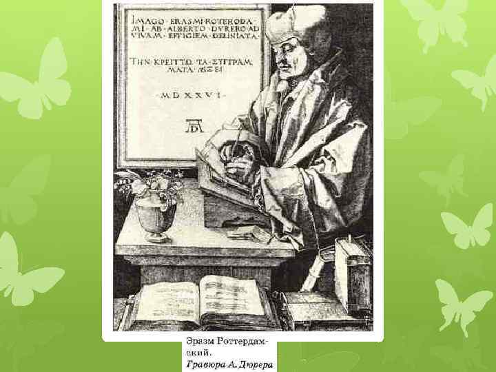 Эразм Роттердамский (1469 – 1536) Суть веры заключается в истинном следовании духу учения и моральным заповедям Христа. Критиковал теологовсхоластов Самое критическое его произведение «Похвала Глупости» , в ней он доказывал что глупости не чужды все.