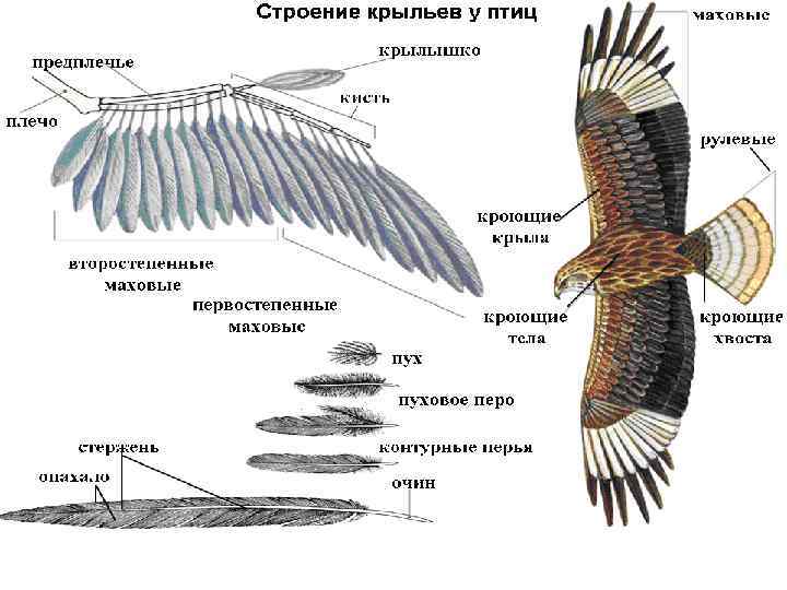 Приспособленность птиц к полету: (облегчают вес, уменьшают сопротивление воздуха, обеспечивают энергией, для движения и приземления) 1. Обтекаемая форма тела, крылья. 2. Различные виды перьев (кроющих, пуховых, маховых, рулевых). 3. Развиты мышцы, обеспечивающие взмах крыльев (на киле грудины) 4. Пористые и сросшиеся кости делают скелет легким и прочным. 5. Двойное дыхание, 4 -хкамерное сердце, ускоряет обмен веществ, переваривание пищи. 6. Отсутствие зубов и мочевого пузыря и одного яичника у самок (облегчают вес тела). 7. Желудок имеет два отдела: железистый и мускулистый. Зоб запасает пищу. 8. Цевка на ноге смягчает приземление.