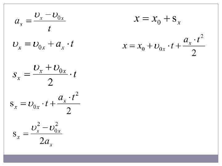 Движение тела с постоянным ускорением свободного падения (по вертикали) • eсли g = const, то справедливы уравнения:
