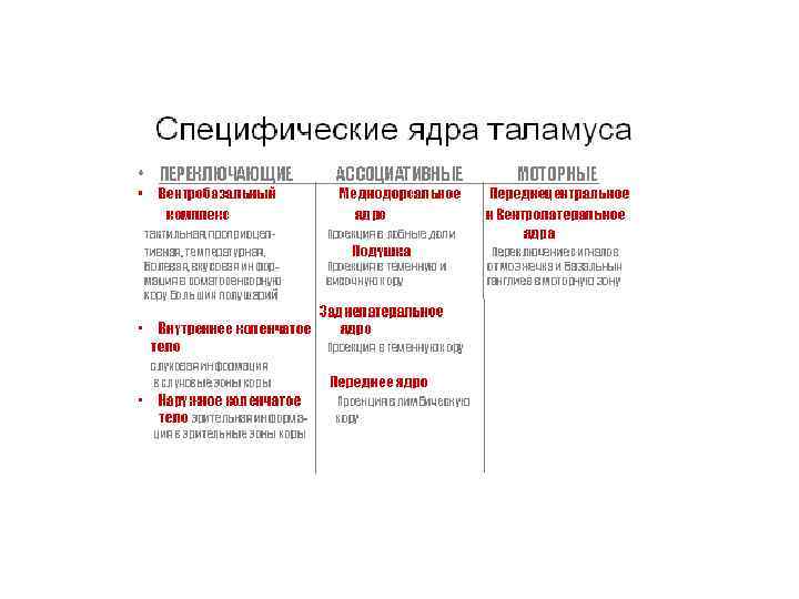 Физиологические ядра таламуса • Специфические • Неспецифические • Ассоциативные