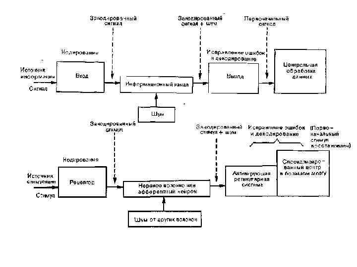 • • • • Кодирование — процесс преобразования ___________________в услов ную форму (_______), удобную для передачи по каналу связи. Любое преобразование информации в отделах сенсорной системы явля ется кодированием. Где происходит кодирование сенсорной информации? ______________________ Как происходит кодирование сенсорной информации? нервные импульсы частота импульсов пач ки интервалами между пачками химический код структурные изменения в нейронах специфичнос ть рецепторов избирательная чувствительность рецепторов к определенному виду энергии модально специфические нейроны принцип организации меченая линия топическая организация рецептивные поля паттерны