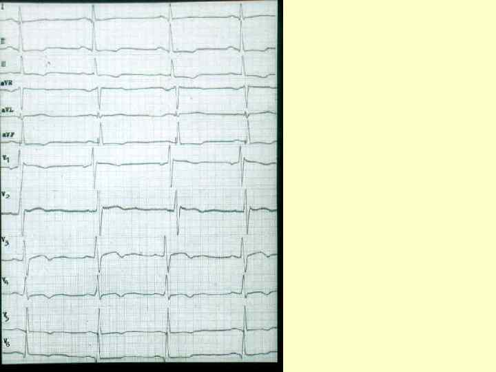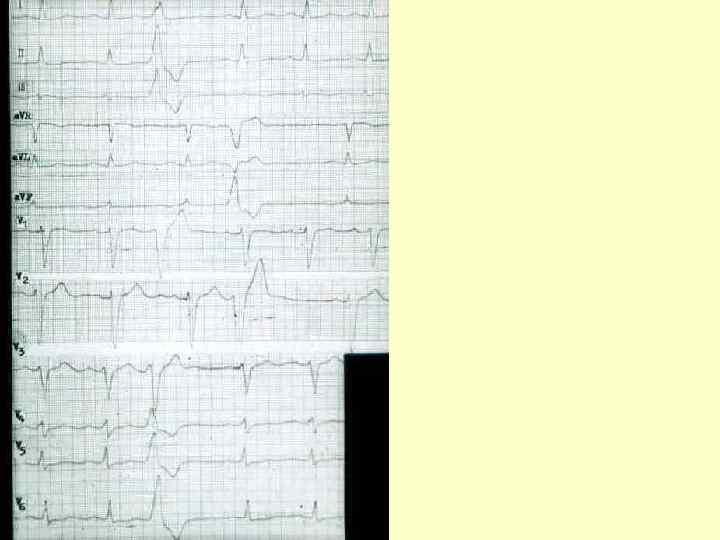 Диагностические критерии блокады передней ветви левой ножки пучка Гиса: • резкое отклонение электрической оси сердца влево на угол -300 и левее; • продолжительность желудочкового комплекса не более 0. 12 с; • увеличение амплитуды зубца S в левых грудных отведениях; • не часто встречающееся присутствие в отведениях V 2 – V 4 зубцы q с амплитудой менее 15% соответствующего зубца R и нормальной ширины; • окончание желудочкового комплекса в отведении a. VR увеличенным зубцом R ( «поздний R» ); • непостоянное присутствие в отведении V 1 зубца r′.
