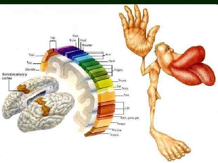 Рецепторный отдел • экстерорецепторы кожи: – тактильные, – болевые, – температурные и пр. • проприорецепторы мышц, сухожилий, суставов, связок • интерорецепторы внутренних органов (хеморецепторы и барорецепторы)