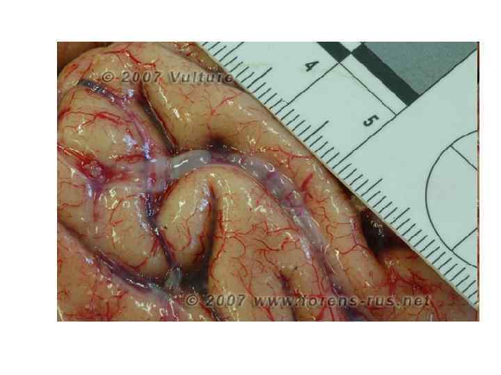 Твердая мозговая оболочка складкой проникает глубоко между правым и левым полушариями и между затылочным полюсом полушарий и мозжечком. Паутинная оболочка входит во все борозды на поверхности. Под паутинной оболочкой находится подпаутинное пространство, заполненное спинномозговой жидкостью. Расширения подпаутинного пространства называются цистернами мозга.