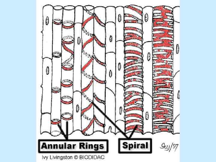 КОЛЬЧАТЫЕ И СПИРАЛЬНЫЕ СОСУДЫ ХАРАКТЕРИЗУЮТСЯ ВЫТЯНУТЫМИ ЧЛЕНИКАМИ И НЕЗНАЧИТЕЛЬНЫМ ДИАМЕТРОМ