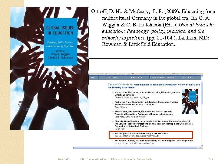 Ortloff, D. H. , & Mc. Carty, L. P. (2009). Educating for a multicultural Germany in the global era. En G. A. Wiggan & C. B. Hutchison (Eds. ), Global issues in education: Pedagogy, policy, practice, and the minority experience (pp. 81 -104 ). Lanham, MD: Rowman & Littlefield Education. Rev. 2011 PICIC-Graduados/ Biblioteca Gerardo Sellés Solá 50