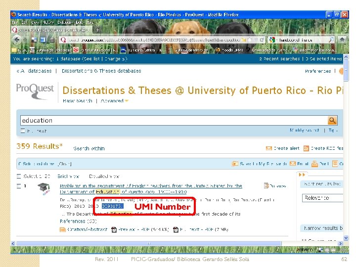 UMI Number Rev. 2011 PICIC-Graduados/ Biblioteca Gerardo Sellés Solá 62