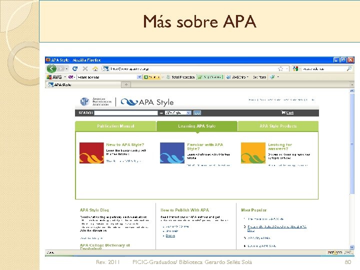 Más sobre APA http: //www. apastyle. org Rev. 2011 PICIC-Graduados/ Biblioteca Gerardo Sellés Solá 80