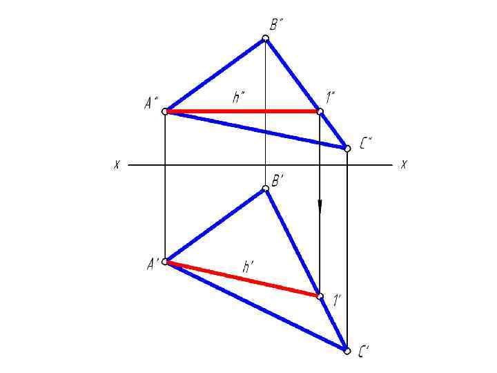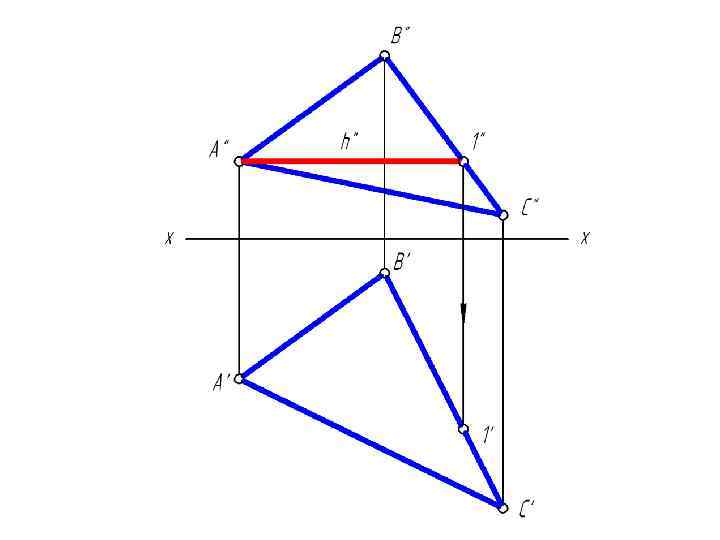 Горизонталь плоскости • Горизонталь плоскости – прямая, принадлежащая плоскости и параллельная горизонтальной плоскости проекции.