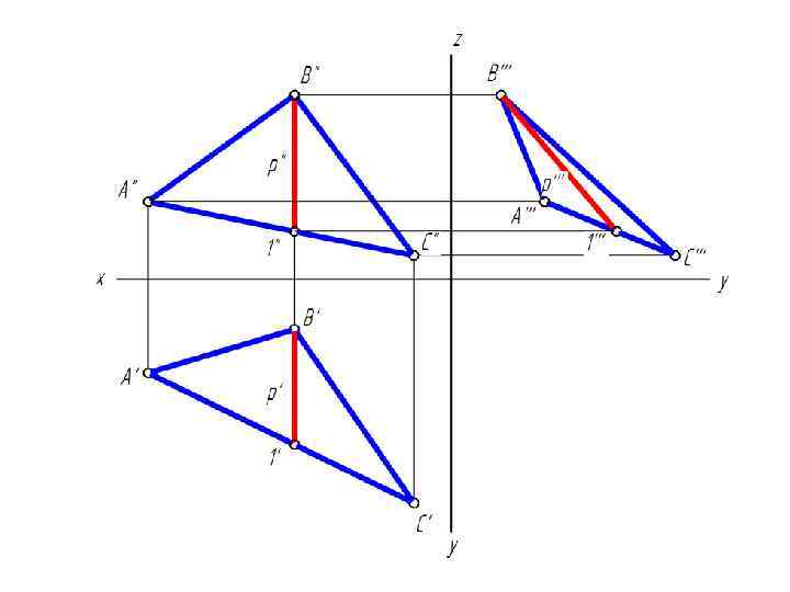 Профильная прямая плоскости • Профильная прямая плоскости – прямая, принадлежащая плоскости и параллельная профильной плоскости проекции.
