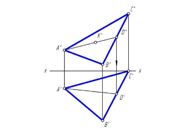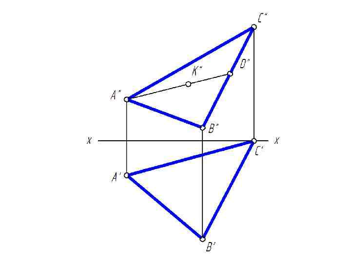 Достроить горизонтальную проекцию точки К, принадлежащей плоскости треугольника АВС.