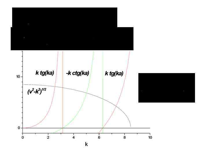 III(x)=Сeхр( x) Для области I решение, очевидно, имеет вид I(x)= Сeхр( x) , где знак при “+” коэффициенте С соответствует четным, а знак “ ” – нечетным решениям. k tg(ka)= (четные решения), k сtg(ka)= (нечетные решения).