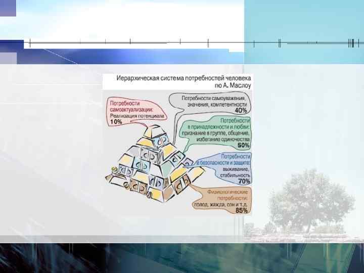 Существует иерархия различных потребностей от самых примитивных до самых утонченных. Это пытался показать А. Маслоу в своей иерархической теории потребностей. Согласно этому подходу, любое существо стремится к своему расцвету, действуя в наибольшем соответствии со своими возможностями и притязаниями.
