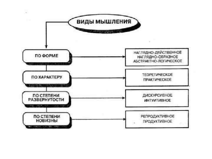 Мышление Чаще мышление делят следующим образом: Теоретическое : Понятийное; Образное; Практическое: Наглядно-образное; Наглядно-действенное.