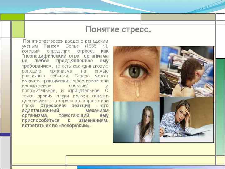 Психофизиологические негативные факторы. Понятие стресса. Калябина Ольга «Менежмент»