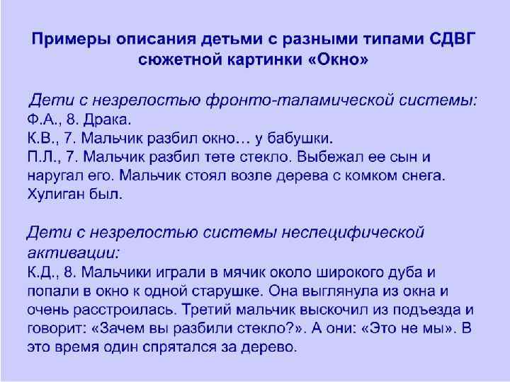 Особенности развития детей с НФТС § «Невнимание» к существенным деталям может проявляться и в выражении детьми с НФТС своих собственных мыслей, затрудняя, в свою очередь, понимание их речи другими. К 9 -10 годам все эти процессы у детей с незрелостью ФТС проходят через период значительного улучшения, повидимому, за счет созревания корковоподкорковых связей и усиления контроля коры. Одновременно, в норме, в этот период происходит ухудшение произвольной регуляции деятельности в результате перестройки функциональной системы и осуществляется переход управления на уровень префронтальной коры.