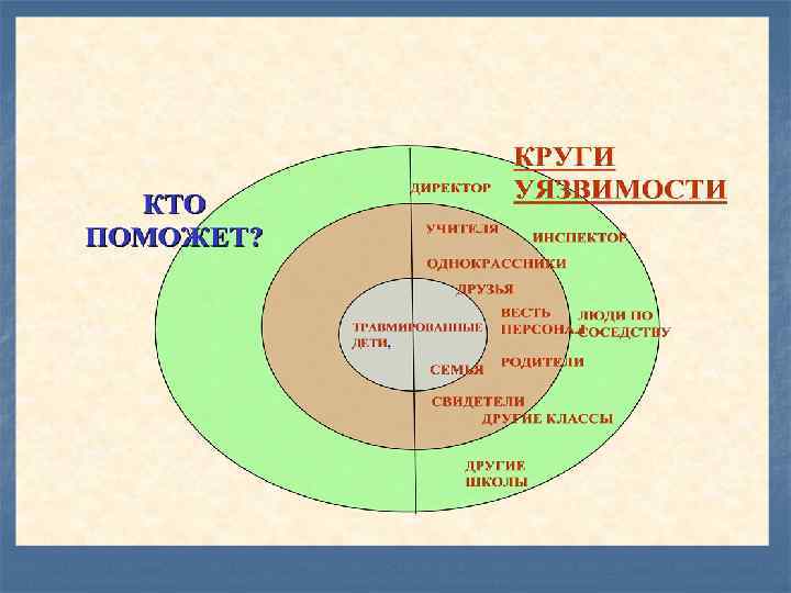 Социально-психологический аспект Идентификация или уподобление жертвам Знакомые Дальние родственники или близкие друзья Непосредственно семья