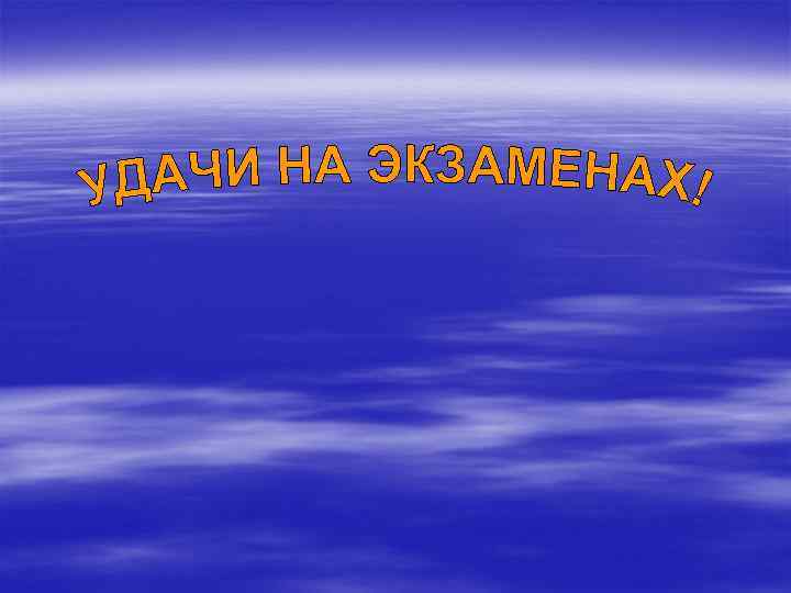 КАКИЕ ЖЕ ПРОДУКТЫ ПОЛЕЗНЕЕ ПЕРЕД ЭКЗАМЕНАМИ? Избегайте сахара, шоколада, конфет, печенья Ограничьте количество чипсов Чтобы подпитать мозги. Попробуйте: § свежие фрукты или сухофрукты § бутерброд § тарелку супа § кусок сыра § несоленые орешки § йогурт § только что сделанный молочный коктейль