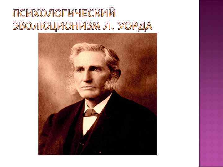 Лестер Уорд (1841 -1913) - американский социолог, которого нередко называют отцом социологии в США. В целом положительно восприняв идеи эволюционного развития общества, обоснованные в трудах О. Конта и Г. Спенсера, Л. Уорд перенес центр тяжести с биологических моментов на психологические. В своих трудах "Динамическая социология", "Психические факторы цивилизации", "Очерки социологии" и других он пытается раскрыть психологические причины деятельности и поведения людей и тем самым обосновать психологические механизмы развития общества. Он писал, что "социальные силы суть силы психологические и заключаются в умственной природе индивидуальных членов общества".
