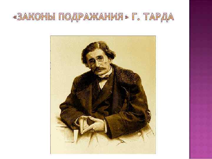 Наряду с психологическим эволюционизмом Л. Уорда развивалось направление, которое исследовало проблему психологического подражания и его роли в функционировании общества. Ведущим его представителем был французский мыслитель Габриэль Тард (1843 - 1904). Свое учение он развил в трудах "Законы подражания", "Социальная логика", "Социальные законы", "Этюды по социальной психологии", "Общественное мнение и толпа" и др. Одной из фундаментальных проблем, решаемых Г. Тардом, является проблема взаимодействия личности и общества. Для Тарда первичным элементом во взаимодействии человека и общества является человек. Каждая человеческая личность живет и действует рядом со многими другими людьми. В результате их взаимодействия формируются группы людей с присущей им групповой психологией и общество как сложная система взаимодействия отдельных людей и социальных групп.