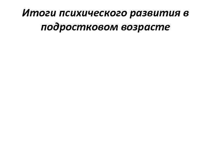Итоги психического развития в подростковом возрасте