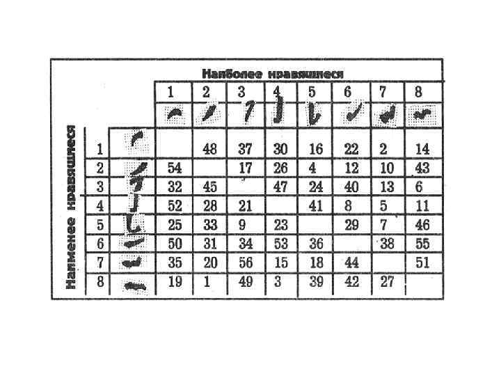 Эмоциональные состояния Внимательно рассмотрите восемь знаков. Выберите из них один, который вам нравится больше всех, и запомните номер. Выберите знак, который вам нравится меньше всего, и также запомните номер. Выбор делается неторопливо, иначе результат будет искажен.