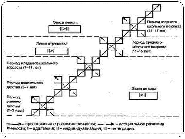 Периодизация А. В. Петровского (социальное развитие) Адаптация – «Такой, как все» Индивидуализация – «Не такой, как все» Интеграция – «Все вместе, но я особенный»