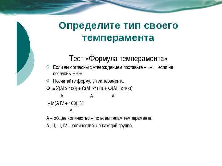 Типы темперамента • Холерик • Флегматик • Меланхолик • Сангвиник