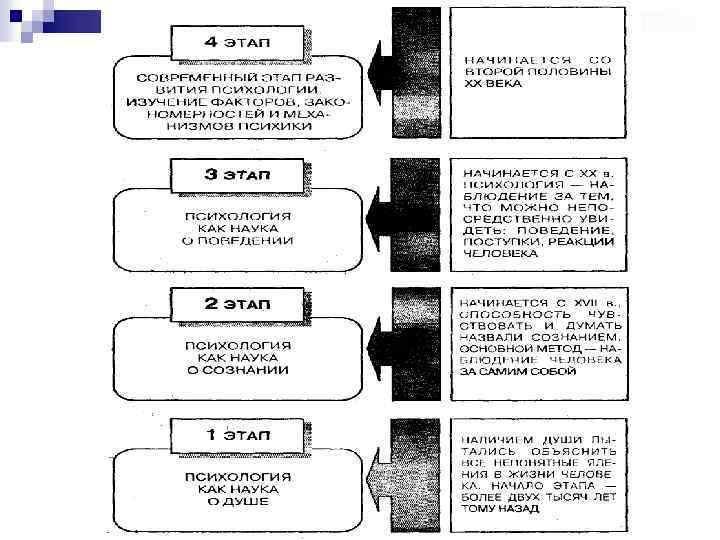 ИСТОРИЯ ПСИХОЛОГИИ Психология, как и любая другая наука, прошла определенный путь развития. В истории психологии можно условно выделить четыре этапа.