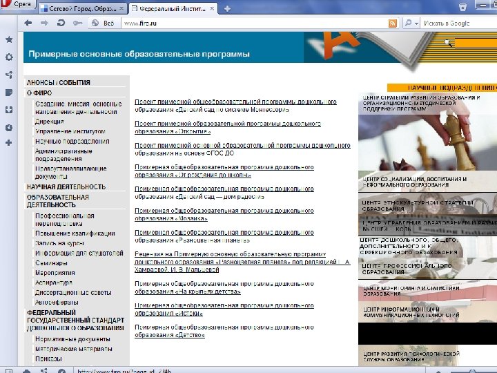 План Концептуальные основы введения ФГОС дошкольного образования: нормативно-правовое обеспечение деятельности дошкольных образовательных организаций • 1. 1. Федеральный закон «Об образовании в РФ» о статусе дошкольного образования в системе непрерывного образования Российской Федерации • 1. 2. Обеспечение качества дошкольного образования в условиях введения ФГОС дошкольного образования • 1. 3. Профессиональный стандарт педагога (воспитателя) дошкольной организации 2. Качество дошкольного образования: содержание дошкольного образования и проектирование образовательной деятельности в условиях ФГОС дошкольного образования • 2. 1. Характеристика примерной основной образовательной программы дошкольного образования и требований к результатам ее освоения • 2. 2. Особенности проектирования педагогического процесса в условиях введения ФГОС дошкольного образования • 2. 3. Современные подходы к организации образовательного процесса в дошкольной организации 1.