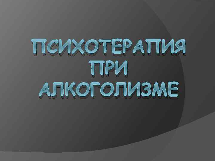 ПСИХОТЕРАПИЯ ПРИ АЛКОГОЛИЗМЕ