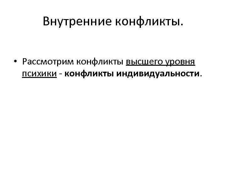 Внутренние конфликты. • Рассмотрим конфликты высшего уровня психики - конфликты индивидуальности.