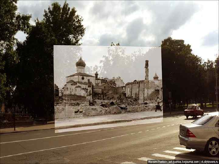 Церковь Василия на Горке. Во время оккупации в подвале церкви сражались военнопленные. При оставлении Пскова немцами церковь была заминирована –во входных дверях заложены минысюрпризы.
