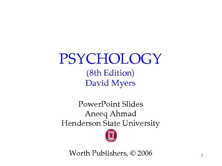 PSYCHOLOGY (8 th Edition) David Myers Power. Point Slides Aneeq Ahmad Henderson State University Worth Publishers, © 2006 1