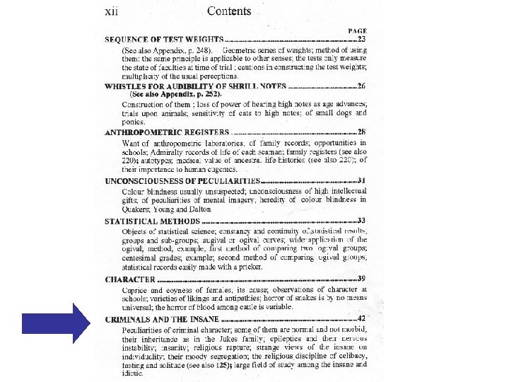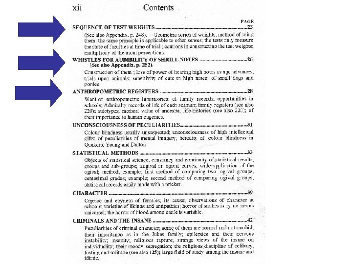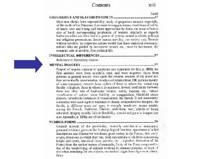 1869 1) At menneskelig variation findes 2) At intelligens er med i denne variation 3) At intelligensen nedarves Jeg tog nu nogle årgange af eksamensprøverne i matematik fra Cambridge og viste, at de også fulgte denne kurve.