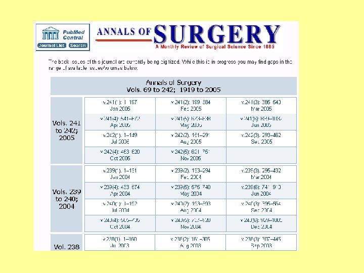 Open Access Journals in PMC • Open Access Journals in PMC: – Bio. Med Central Journals – Amphibian and Reptile Conservation – Biological Procedures Online – Journal of Biomedicine and Biotechnology – Journal of Insect Science – Nucleic Acids Research – PLo. S Biology and Medicine – Preventing Chronic Disease • In October 2003, PMC began accepting individual open access articles from journals that do not participate in PMC on a routine basis. – Science – Biological Chemistry