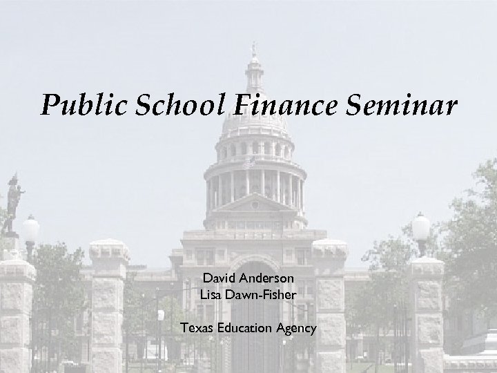 Public School Finance Seminar David Anderson Lisa Dawn-Fisher Texas Education Agency