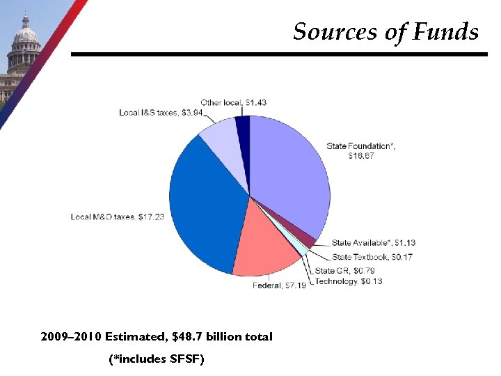 Sources of Funds 2009– 2010 Estimated, $48. 7 billion total (*includes SFSF)