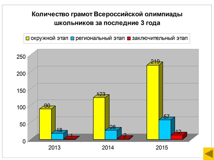 Количество призеров (человек) и грамот Всероссийской олимпиады и Московских олимпиад школьников число призеров Число число грамот предметов окружной этап ВОШ 143 219 17 региональный этап ВОШ 46 57 9 Заключительный этап ВОШ 12 14 3 Московские олимпиады школьников 15 17 5
