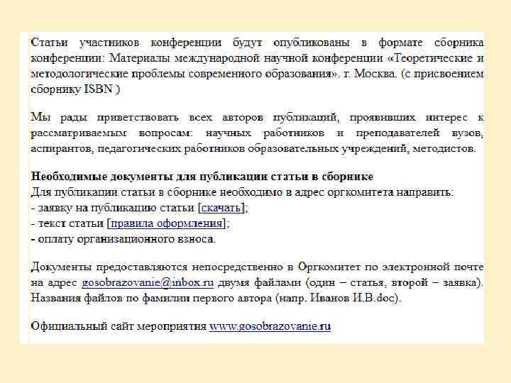 Оформление статьи должно полностью соответствовать требованиям издателя Особенно важно: • • Соответствие теме секции Соблюдение сроков публикации Объем (и в чем объем измеряется) Оформление заголовка и данных автора Возможность использования графики (диаграммы…, схемы… и т. п. ) Структура Оформление списка литературы и сносок на источники