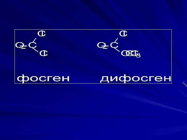 Применение: фосген и его производные являются важным исходным продуктом синтеза пластмасс, синтетических волокон, красителей, пестицидов. Фосген является одним из токсичных продуктов термической деструкции хлорорганических соединений (фреоны, поливинилхлоридный пластик, тефлон, четыреххлористый углерод).