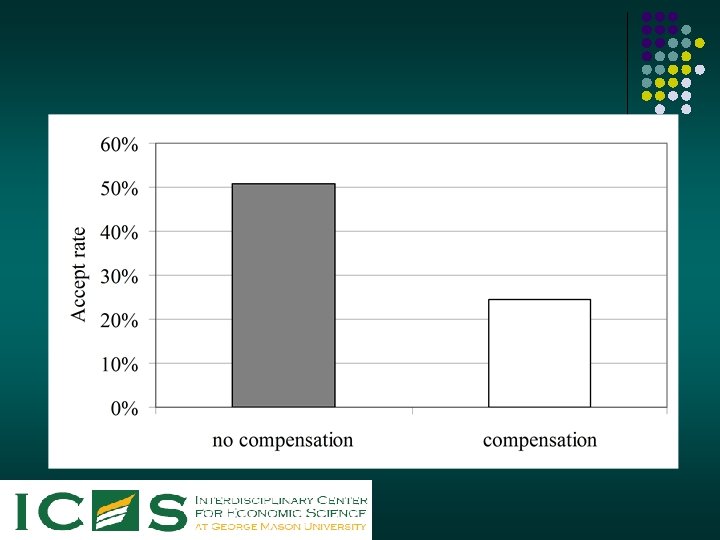 intention effects l Mc. Cabe, Rigdon and Smith (2003): l l Outcome-based model: inequality aversion. Intention-based model: players reading each other’s motivation. l Depending on the available alternatives, identical outcomes may be interpreted differentially. (not the case in outcome-based model)