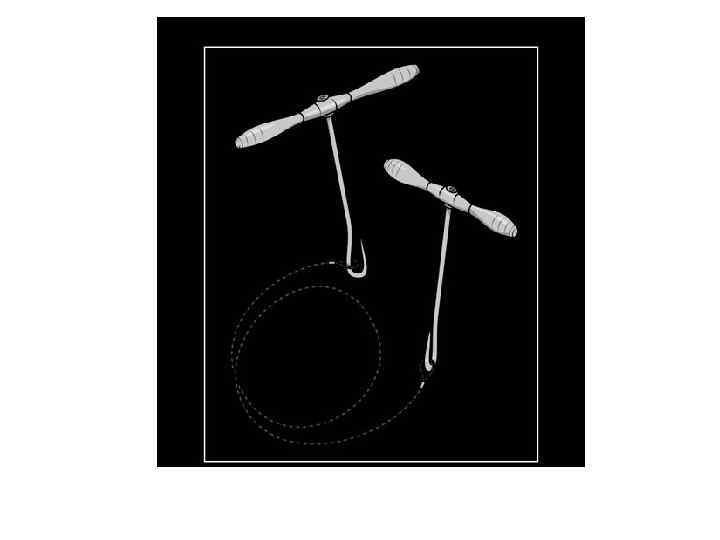 4 - Между двумя соседними трепанационными отверстиями вводят металлический проводник Поленова, поверх него проводят пилу Оливекрона (Джильи) и перепиливают кость. Пила Джильи (Оливекрона) 5 - Такую манипуляцию проводят и между остальными отверстиями, исключая нижнюю поперечную линию, её слегка надпиливают