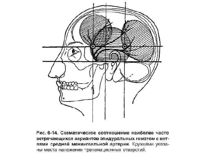 Наиболее частые источники кровотечения – ствол и ветви средней оболочечной артерии, сопровождающие её оболочечные вены, диплоические вены, синусы.