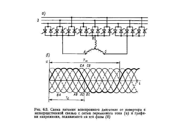 Структурные схемы ПЧ а) б) Структурные схемы преобразователей частоты: а) циклоконвертора, б) преобразователя со звеном постоянного тока. 1 -циклоконвертор; 2– асинхронный двигатель; 3– управляемый выпрямитель; 4– звено постоянного тока; 5– автономный инвертор.