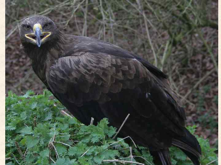 Степной орел Степной орёл птица семейства ястребиных отряда хищных. Длина тела 66— 87 см, весит 2, 7— 4, 8 кг. Самки крупнее самцов. Оперение тёмно-бурое, на затылке рыжеватое пятно; молодые птицы пятнистые. С. о. распространён в сухих степях, полупустынях, реже в пустынях от Румынии (Добруджа) до северо-восточного Китая; в СССР обычен в Казахстане и Забайкалье. На зиму отлетает. Гнёзда на земле, на курганах, буграх. В кладке обычно 2 яйца. Птенцы остаются в гнезде до 2 мес. Питается в основном грызунами, особенно сусликами, которых подкарауливает у нор; иногда поедает падаль, ловит птиц. Очень полезен. Всюду становится редок и нуждается охране.