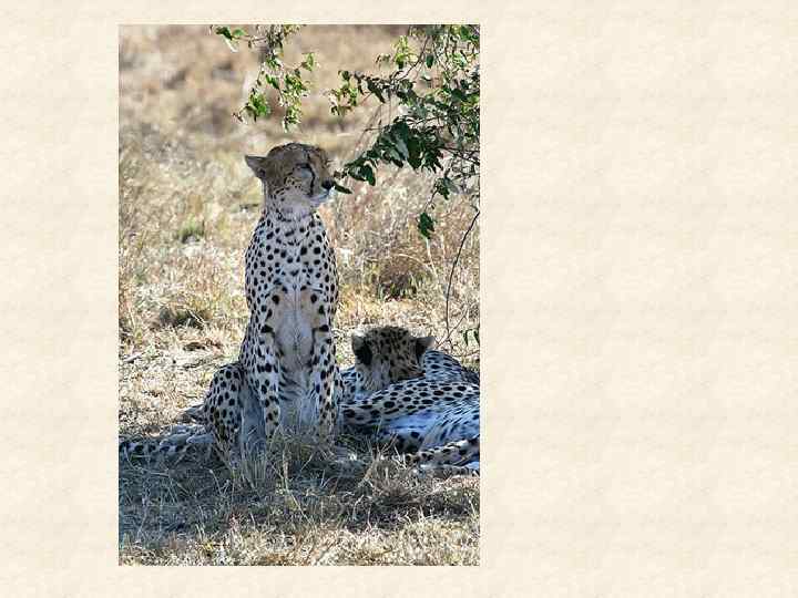Распространение и образ жизни гепарда Гепард принадлежит к обитателям равнинных пустынь и саванн. Он распространен в восточной и юго-западной Африке, Азии, Индии. Но по всему ареалу обитания встречается очень редко. Гепард ведет дневной образ жизни. Охотится днем или в сумерки, реже - ночью, перед этим отдохнув в логове, в траве или под кустом. У гепарда острое зрение. Он издалека видит животных, за которыми охотится. К жертве он подкрадывается, используя неровности ландшафта на расстояние 150 -200 метров. Затем начинается кратковременная (до 500 метров) погоня. Во время бега гепард отталкивается передними и задними лапами. Это позволяет развивать ему скорость до 100 км/час и больше. Его тело идеально приспособлено для рассекания воздуха. На такой скорости гепард совершает прыжки до 6 метров. Длинной лапой гепард наносит такой удар, что его жертва летит кувырком. Если гепард промахнулся, то он не продолжает погоню. Гепарду легче начать охоту сначала, чем заниматься продолжительным преследованием, т. к. на длительный бег он не способен. Нередко эти звери охотятся парами или большими семьями, что также нетипично для кошек. Охотится он на газелей, джейранов, мелких антилоп. Питается также зайцами и птицами. Держится он поодиночке, если не считать времени воспитания молодняка. У гепарда острое зрение, и он издалека видит копытных, за которыми охотится.