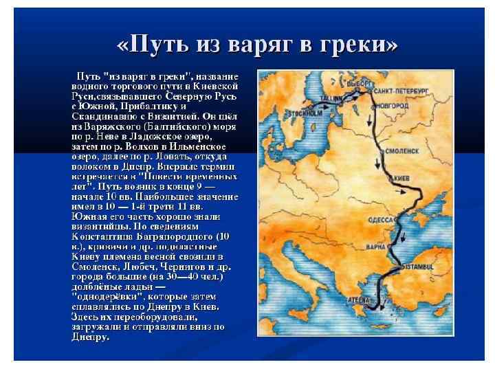 Перевозимые товары Из Скандинавии вывозили железо-сырец, амбру, моржовую кость, изделия из китовой кожи (корабельные канаты и др. ), оружие, художественные изделия, а также предметы, награбленные викингами в Западной Европе (французские вина, ювелирные изделия и драгоценности, шёлковые и батистовые ткани, серебряную утварь); из Византии — вина, пряности, ювелирные и стеклянные изделия, дорогие ткани, иконы, книги; из Прибалтики — янтарь; из Северной Руси (Новгорода) — «мягкое золото» (меха соболей, куниц, выдр, бобров и др. ), льняные ткани, лес, мёд, воск, кованую и керамическую утварь, оружие, кожи, смолу; из Южной Руси (Киева) — хлеб, различные ремесленные и художественные изделия, серебро в монетах и т. д. ; с Волыни — шиферные пряслица и др.